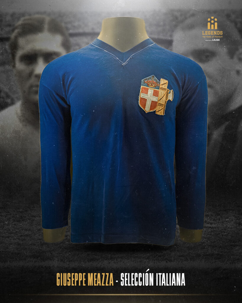 Esta camiseta suya, es una de las mayores reliquias que pueden encontrarse en Legends. La camiseta que vistió el propio Meazza en el Mundial de 1934. Toda una joya para conmemorar su figura en el día de su cumpleaños.
